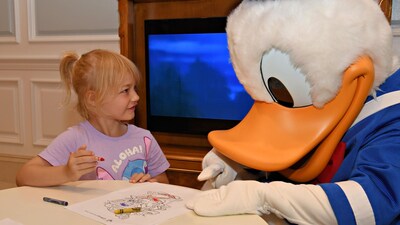 "My five year old granddaughter colouring with Donald when the characters visited the Villas at Disney’s Grand Floridian Hotel. He spent so much time with her, and she adored him - as you can see"